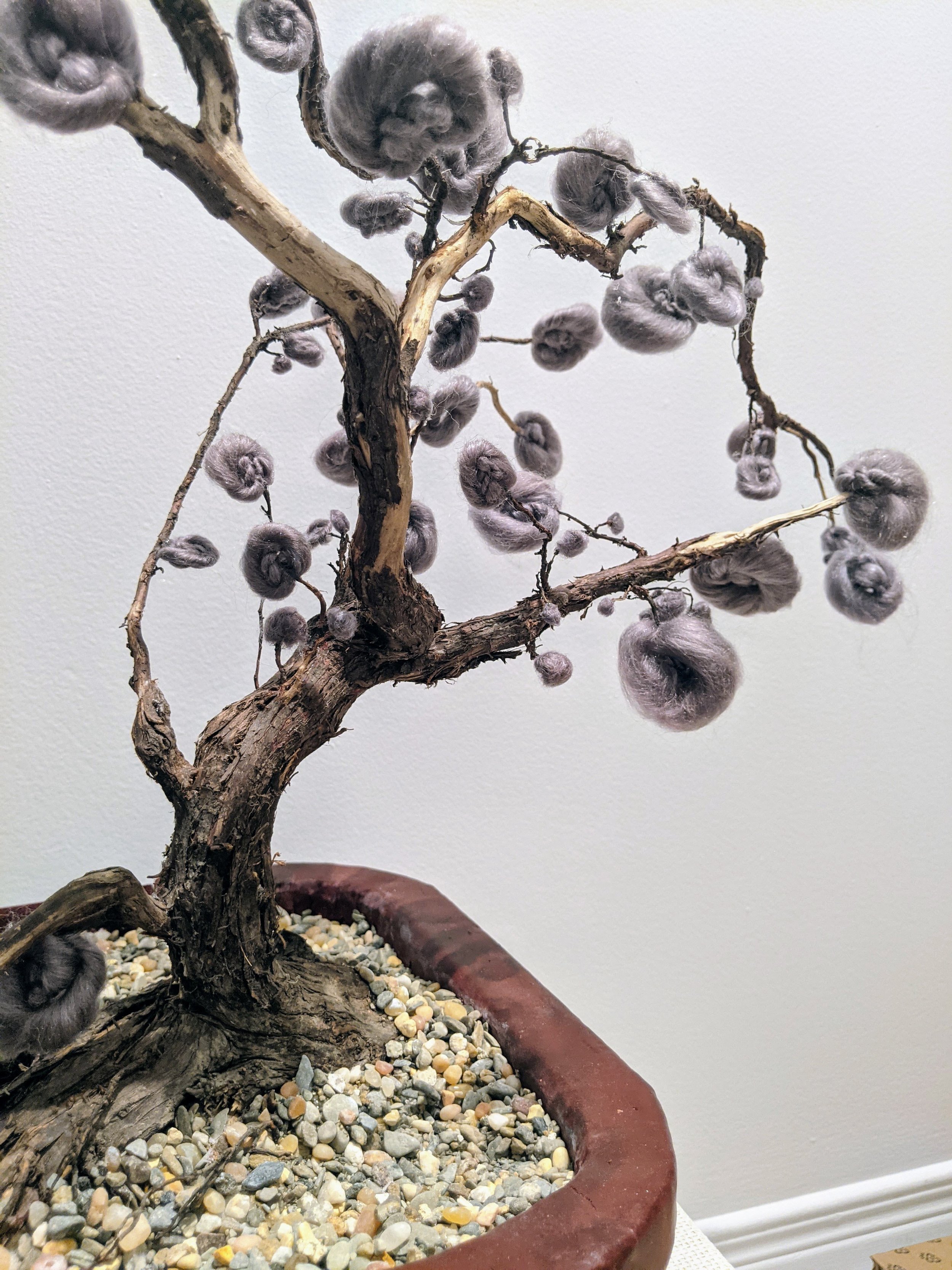 Pour l’arbre, j’ai mélangé de la laine et du tencel pour avoir une couleur et brillance similaire à mes cheveux.